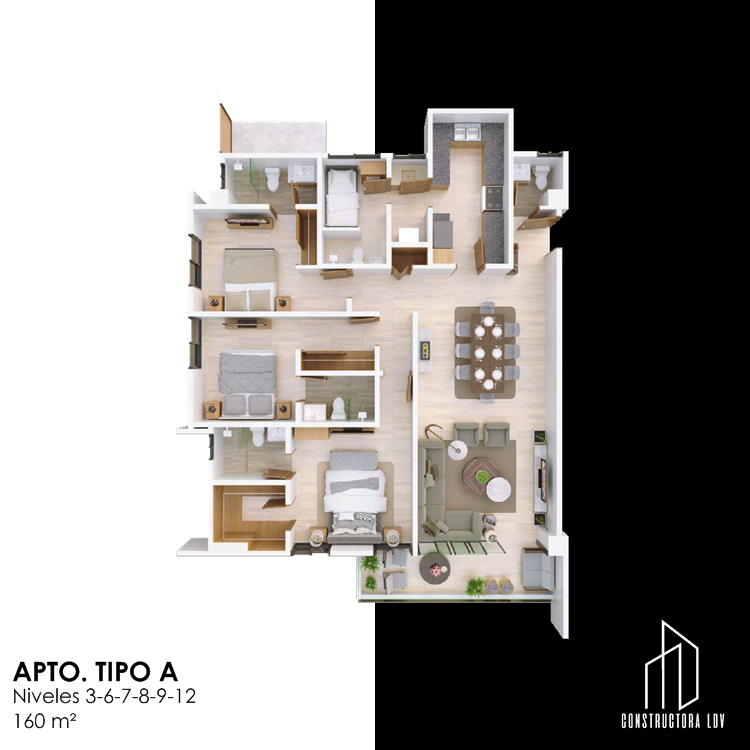 Apartamentos Tipo A en nuestra Torre FG-03: Niveles 3, 6, 7, 8, 9 y 12 – 160 m² • Cocina