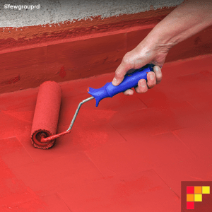 Comenzaremos por pintar con una brocha pequeña las esquinas más alejadas de la puerta de entrada a la habitación, después con un rodillo pintaremos una capa de pintura en el piso y lo dejaremos secar para después poner otra capa de pintura.